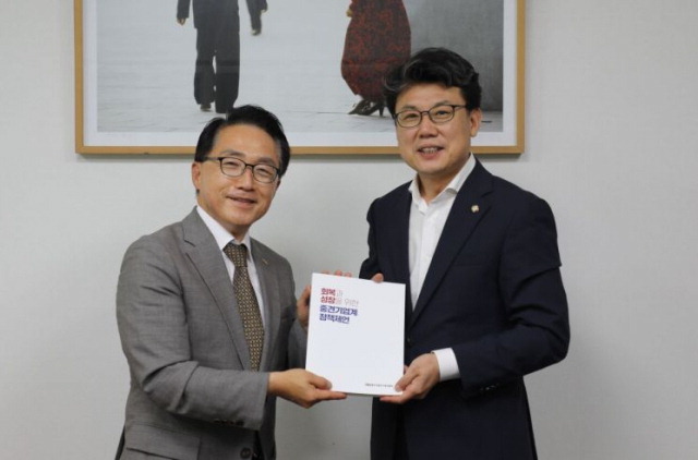 이호준 중견기업연합회 상근부회장(왼쪽)과 진성준 국정기획위원회 부위원장.
