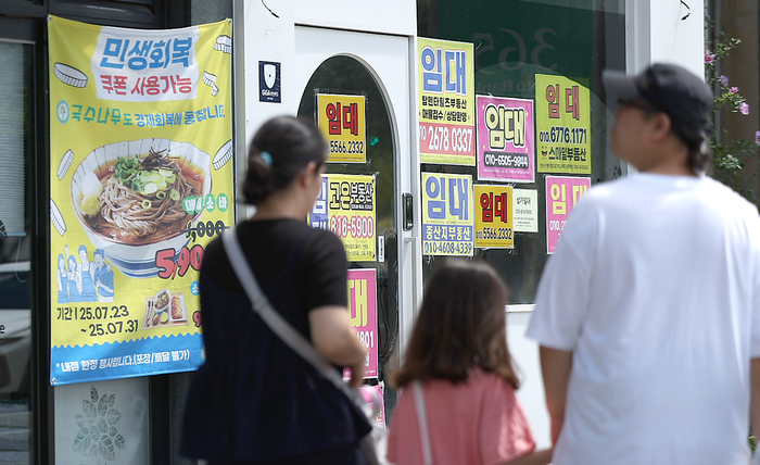 민생회복 소비쿠폰 지급 후 첫 주말인 27일 경북 경산시 한 상가에 민생회복 쿠폰 사용처라는 안내 현수막이 붙어 있다. [사진 = 연합뉴스] 정부는 소비쿠폰이 자영업자·소상공인에게 실질적인 도움이 되도록 대상 조건을 엄격히 제한했다. 그러나 사용처가 제한적이고,소비자 입장에선 불편이 크다는 지적이 잇따르고 있다.