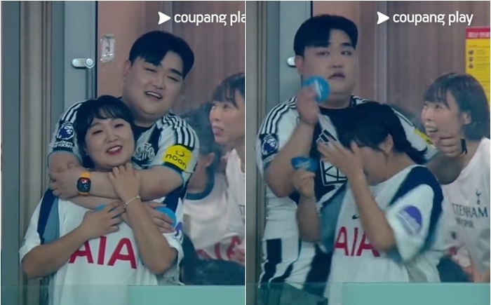 이수지,김규원. 사진|쿠팡플레이 영상 캡처 축구 선수 손흥민의 토트넘 고별전에서 방송인 이수지가 콜드플레이 불륜밈을 패러디했다.