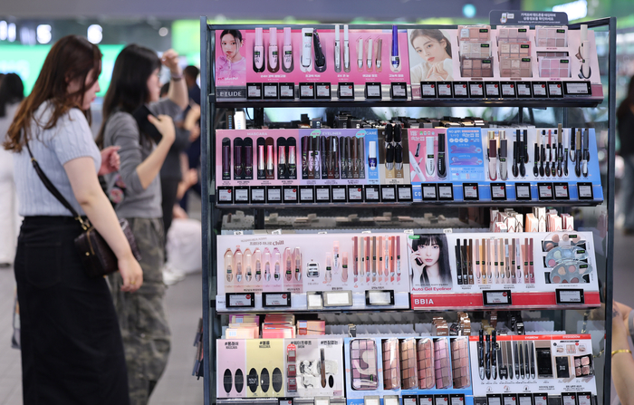 서울 중구 명동의 한 화장품 가게에서 외국인 관광객이 뷰티 용품을 고르고 있다. [사진 = 연합뉴스] LG생활건강,화장품 매출 19.4% 감소...21년만 적자