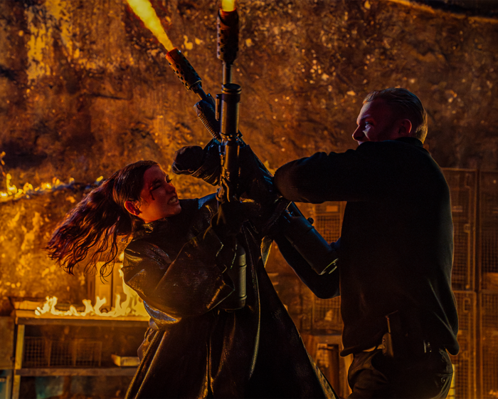 영화 ‘발레리나’의 한 장면. 주인공 이브 마카로(아나 데 아르마스·왼쪽)가 상대와 함께 화염방사기를 들고 치열한 격투를 벌이고 있다. 판씨네마 킬러들의 이야기를 다룬 액션 블록버스터 ‘존 윅’ 시리즈를 관통하는 하나의 서사는 평범한 삶에 대한 갈망이었다. 전설적인 킬러 존 윅(키아누 리브스)은 첫편부터 사랑하는 여자를 만나 결혼하고 조직을 떠났던 인물로 그려진다. 하지만 그 선택에는 댓가가 따르고,결국 모든 걸 잃게 되지만 그럼에도 그는 언젠가 이 일에서 손을 뗄 날을 위해 계속 살인을 한다.