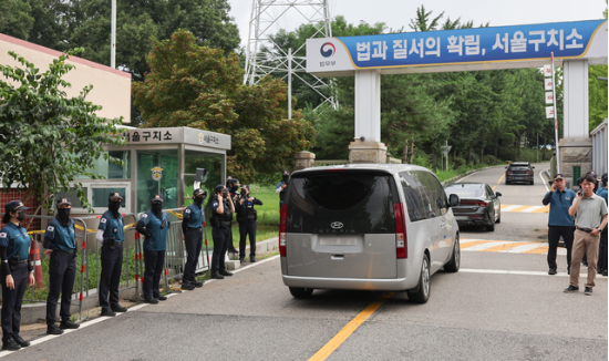 8월 7일 김건희 여사 관련 의혹을 수사하는 민중기 특별검사팀이 조사에 불응하는 윤석열 전 대통령을 체포해 구인하기 위해 경기도 의왕시 서울구치소로 들어가고 있다. (사진=연합뉴스) [속보] 김건희특검 “尹 체포집행 중단…완강한 거부로 부상 우려”