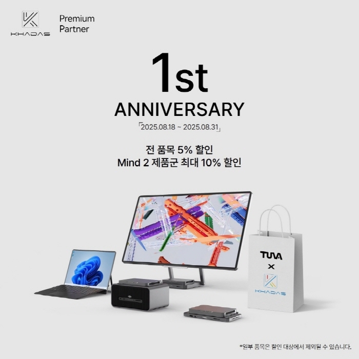 < 출처 : 투바(TUVA) > 디지털 디바이스 전문 유통기업 투바(TUVA)가 포터블 PC 브랜드 ‘Khadas’의 국내 런칭 1주년을 맞아 네이버 강세일 프로모션과 함께 1주년 감사제를 진행한다고 11일 밝혔다.