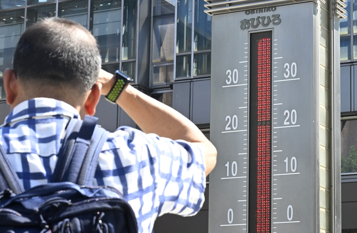 홋카이도 오비히로역 앞에 설치된 온도계. [사진출처=연합뉴스] 올해 7월 일본행 항공 수요가 3년 반 만에 감소세로 돌아서며 항공업계 전반에 우려가 커지고 있다.