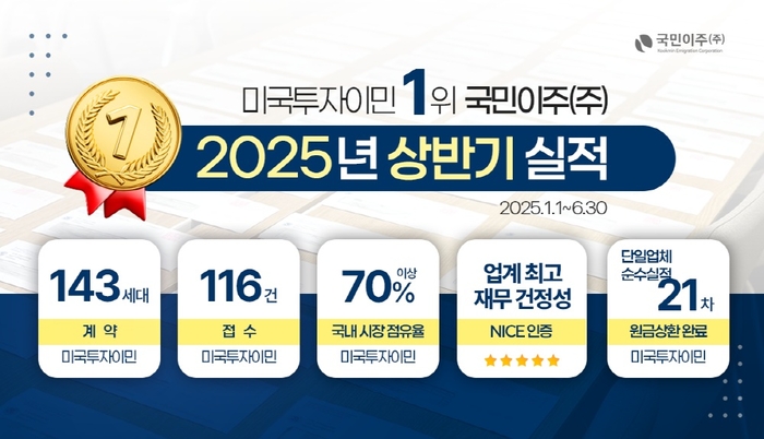 < 출처 : 국민이주㈜ > 한편,국민이주㈜는 9년 연속 국내 미국투자이민 수속 및 승인 1위를 기록하고 있는 이민 전문 기업이다.