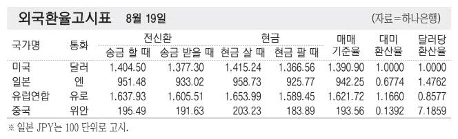 [표] 외국환율고시표