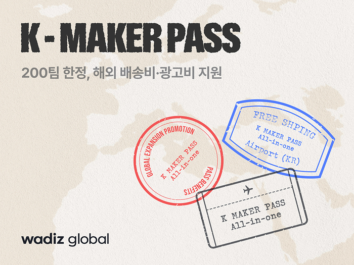 와디즈는 글로벌 시장 진출을 준비하는 소상공인 및 중소기업을 위한 대규모 지원 프로그램 ‘K-메이커 패스(K MAKER PASS)’를 진행한다고 밝혔다.