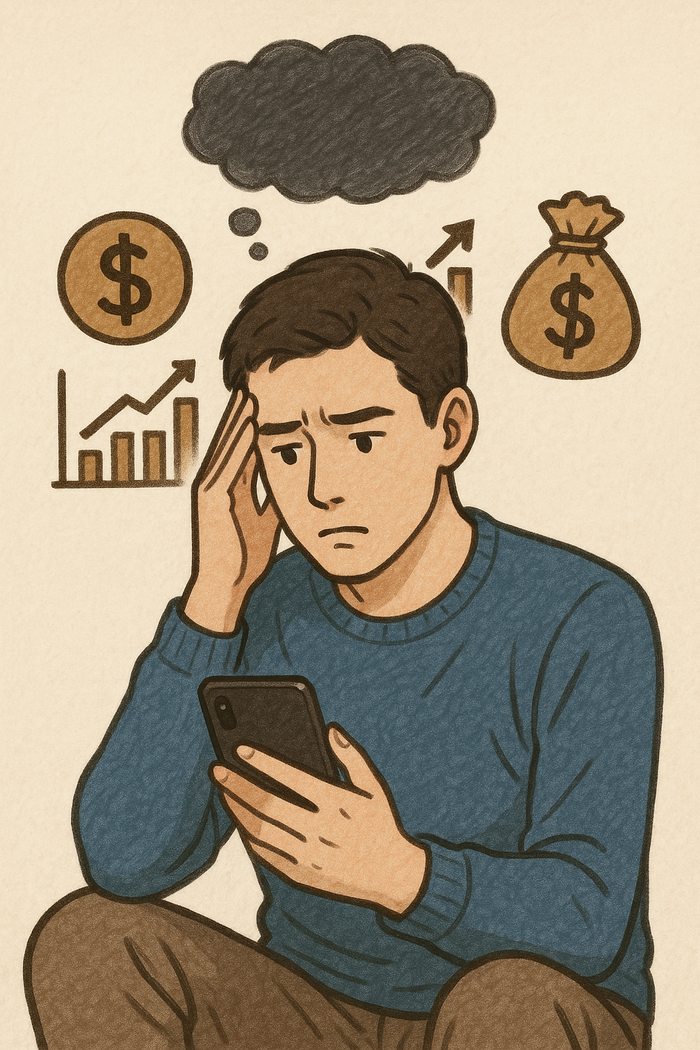 KB국민은행이 청년 고객을 위해 미래 자산을 예측해 연관 상품을 추천해주는 ‘금융 타임머신’ 서비스를 선보인다고 29일 밝혔다. 금융 투자를 고민하는 청년을 그린 AI 이미지. [챗GPT] KB국민은행이 청년 고객을 위해 미래 자산을 예측해주는 ‘금융 타임머신’ 서비스를 선보인다고 29일 밝혔다.