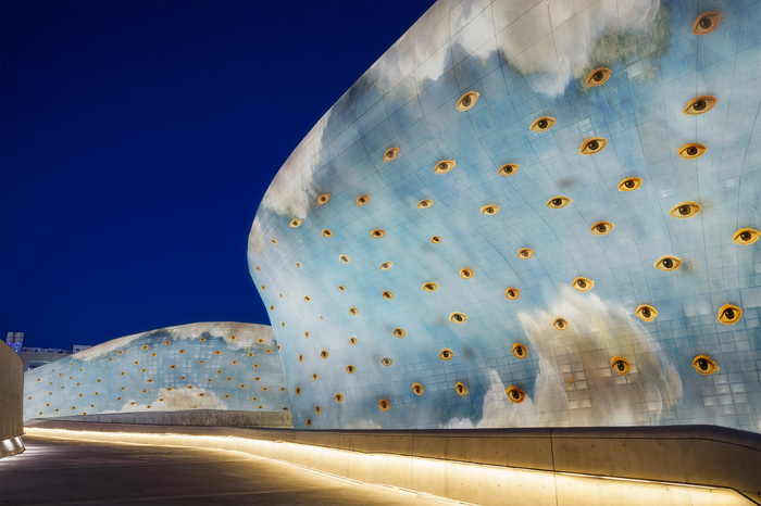 로랑 그라소의 신작 ‘파노프테스(Panoptes)’ / 사진=DDP 파노프테스는 수많은 눈을 투사하는 대형 애니메이션이다. 그리스 신화 속 아르고스 파노프테스에서 영감을 받았다. 관람객은 동시에 보는 존재이자 보이는 존재로 변하는 경험을 하게 된다.