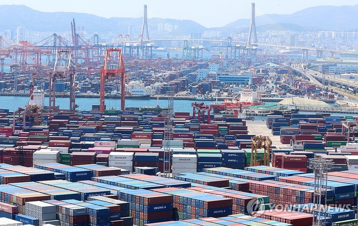 부산항 신선대부두,감만부두에 컨테이너가 가득 쌓여 있는 모습. [사진 출처 = 연합뉴스] 우리나라의 경상수지가 지난 7월까지 27개월 연속 흑자를 이어갔다. 7월 기준 역대 최대 흑자이지만 6월과 비교하면 흑자 폭은 크게 줄었다.