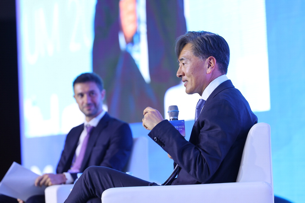 아이온큐 창립자인 김정상 듀크대 교수(오른쪽)가 11일 '세계지식포럼 2025 with APEC 경북'의 '세상을 바꿀 양자컴퓨터' 세션에서 발언하고 있다. 특별취재팀