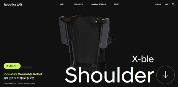 현대차·기아 로보틱스랩 공식 홈페이지 화면 [사진 제공=현대차그룹] 이를 위해 현대차·기아는 다양한 농업 분야에 엑스블 숄더를 적용해 효과를 검증하고,농업 환경에 특화된 제품 활용 방안을 도출해 착용 로봇 확산을 위한 기반을 마련한다. 농촌진흥청은 수요처 발굴과 유관 기관과의 연계를 지원하는 한편,엑스블 숄더의 현장 실증과 사용성 평가에도 협력한다.