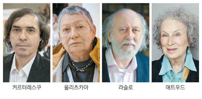 2위는 카리브 출신 미국인으로 탈식민문학의 거장인 저메이카 킨케이드,3위는 8시간짜리 영화 '사탄 탱고'의 원작자인 헝가리 묵시록 문학의 마에스트로 크러스너호르커이 라슬로,4위는 러시아 정부의 억압에 저항한 상징적 존재인 류드밀라 울리츠카야,5위는 시리아 시인 아도니스였다.