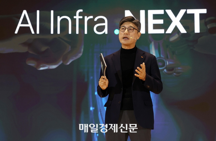 정재헌 SK텔레콤 CEO가 지난 3일 열린 SK AI 서밋에서 ‘AI 혁신의 중심,SKT AI 인프라의 NOW&NEXT’를 주제로 기조연설 하고 있다. [매경DB] SK텔레콤이 통신(MNO)과 인공지능(AI) 양대 체제를 중심으로 조직 개편과 임원 인사를 단행했다고 13일 밝혔다.