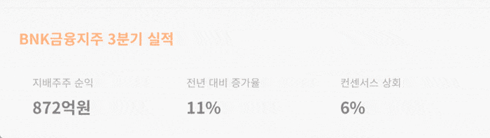 BNK금융지주는 올 3분기 지배주주 순익이 전년 동기 대비 38% 증가한 2942억원으로 컨센서스를 20% 상회하는 어닝 서프라이즈를 기록했다.