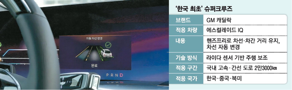 한국GM이 스티어링 휠에서 손을 완전히 놓고도 주행이 가능한 '핸즈프리' 자율주행 기술인 '슈퍼크루즈'를 국내 최초로 들여왔다. 핸즈프리 차량이 국내 도로를 누비게 되면서 완성차 업체들의 자율주행 경쟁도 치열해질 전망이다.