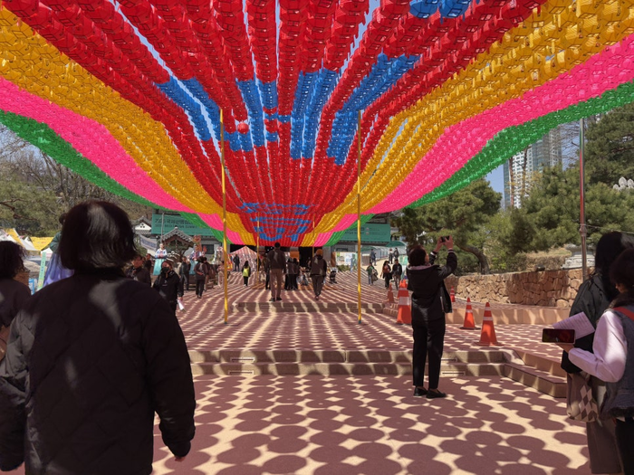 봉은사/사진=김지은 여행+ 기자 첫날에는 우원재와 DJ 웨건이 참여해 힙합 기반 무대를 선보이고 둘째 날에는 DJ 소다가 EDM 공연을 펼친다. 관객은 ‘공’ 풍선을 들고 반야심경 구절을 함께 외치며 공연에 참여할 수 있다.