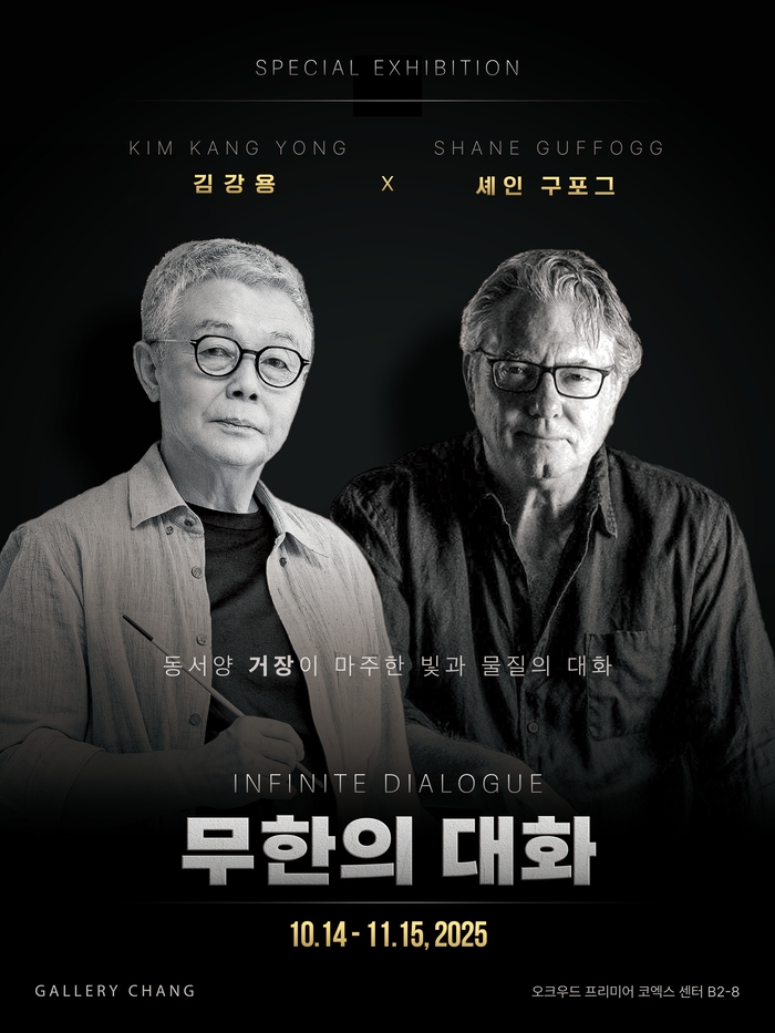 갤러리 장(Gallery Chang)이 오는 10월 오크우드 프리미어 코엑스 센터 내 ‘갤러리 장–서울’에서 한국과 미국의 미술계 거장 김강용·셰인 구포그(Shane Guffogg) 2인전을 개최한다. ‘무한의 대화’라는 타이틀이 붙은 이번 전시는 동서양 두 거장이 각자의 언어로 질문과 응답을 주고받는 ‘철학적 대화’의 장으로 펼쳐진다. 김강용 작가는 지난