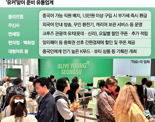2천명 크루즈 온다…'유커' 잡기 불붙어29일부터 중국인 단체 무비자국내 유통업계, 쇼핑특수 공략면세점은 크루즈 관광객 유치K뷰티·패션 성지 올영·무신사'중국어' 안내하고 상품도 개편편의점등은 中페이 할인 행사