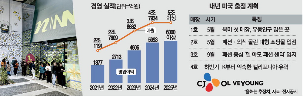 진격의 올리브영, 내년 美매장 4개로 확대K뷰티 경험있고 소득 높은캘리포니아주에 집중 출점4천개 브랜드와 입점 협의"MZ 겨냥 상품구성 주력"美성과 보고 유럽 등 노려