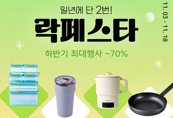 글로벌 생활용품 기업 락앤락이 올해 마지막 프로모션 행사 ‘락페스타’를 오는 18일까지 락앤락몰에서 진행한다고 3일 밝혔다. ‘락페스타’는 락앤락이 일 년에 단 두 번 진행하는 최대 규모의 프로모션 행사다. 한 해 동안 성원해준 고객들에게 감사의 뜻을 전하기 위해 1000여 종의 생활용품을 풍성한 혜택과 함께 선보인다. 이번 락페스타에는 프리미엄 쿡웨어 ‘