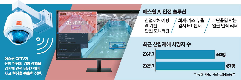 "사고 발생" AI가 즉각 감지해 경고 알람에스원, AI 안전솔루션 각광올해 산업재해 증가하면서위험감지센서 판매 108%↑안전모·방독면 미착용부터위험구역 진입·쓰러짐까지각종 사고상황 실시간 분석