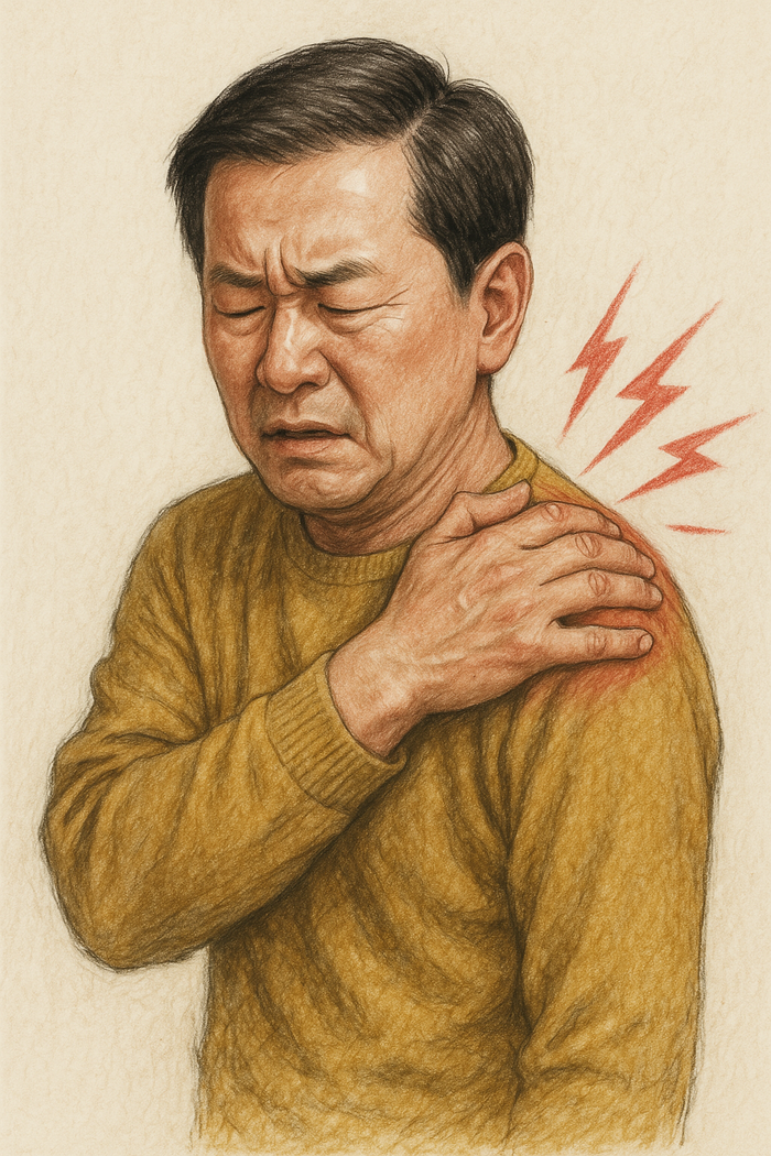 어깨 관절낭 굳으며 염증 생기는 ‘오십견’ 밤에 통증 악화…5060대 환자비중 최다 벽 짚고 팔올리기·수건 스트레칭 효과적